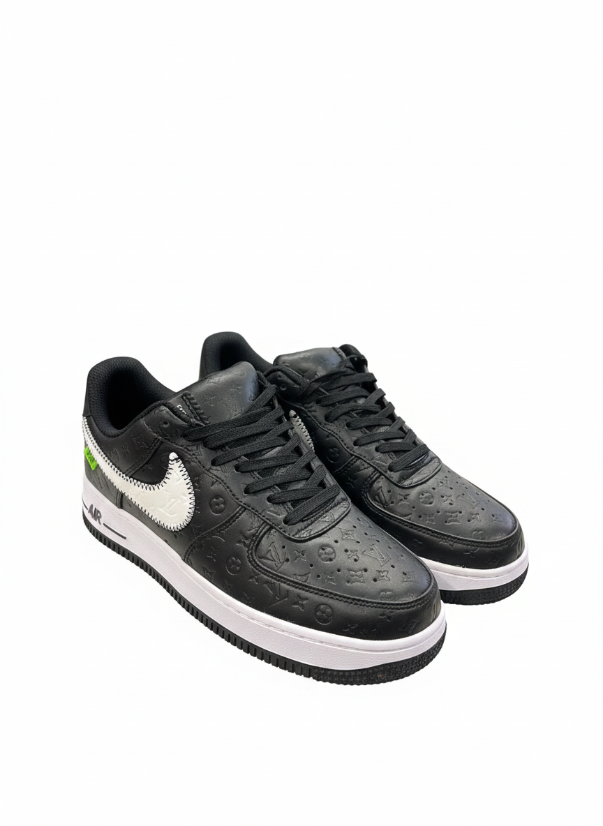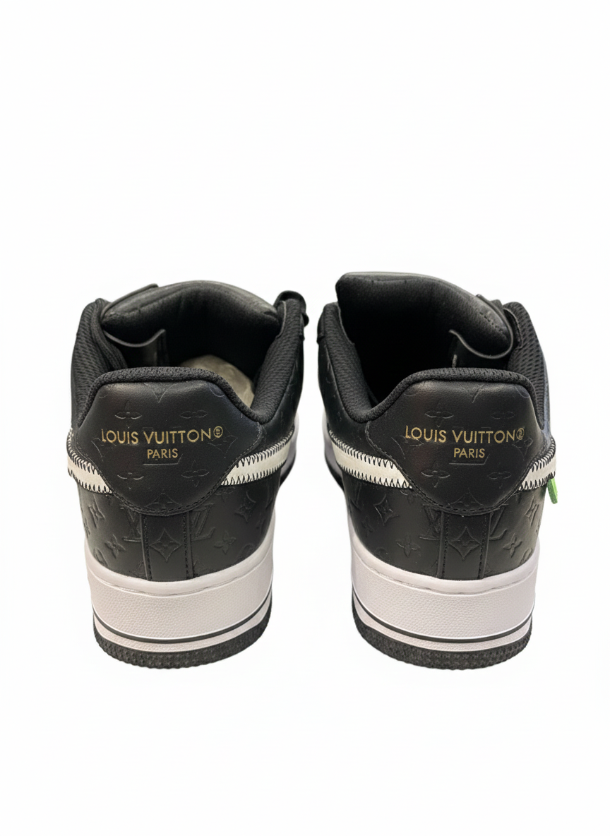 There is white text visible on the edge near the ankle opening, possibly reading "LOUIS VUITTON AIR" or similar branding, suggesting a collaboration or style inspired by classic Nike Air Force 1s